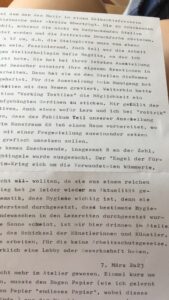 Bei der Nacht der Museen 2023 präsentierte ich Ein-Blick in das Leben einer Künstlerin Feb-März 23, ein 7 m langes mit Schreibmaschine beschriebenes Papier, das meine Gedanken zu dieser Zeit widerspiegelt. Bei den Kunstpunkten las ich es komplett vor (siehe Performances):
