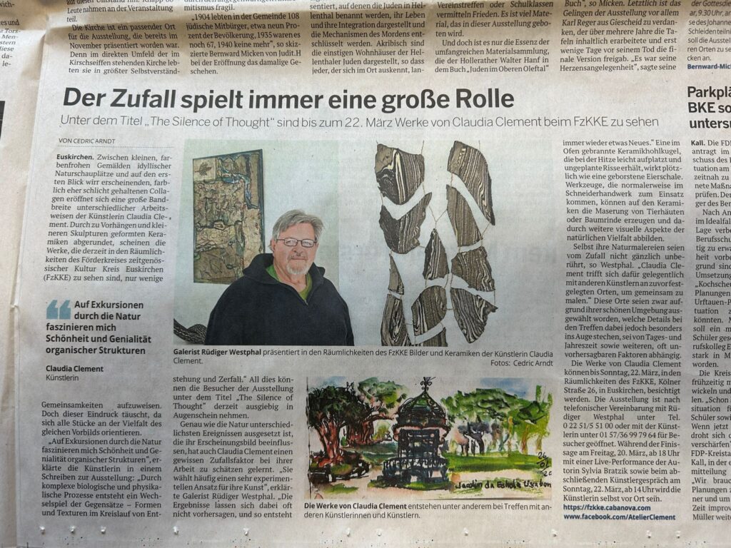 Anlässlich der Ausstellung von Claudia Clement und meiner Performance im FzKKE Euskirchen ist in der Kölnischen Rundschau ein Artikel erschienen:
