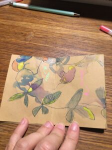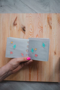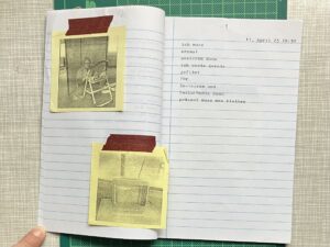 Im Sommer 2024 ereignete sich in meiner Abwesenheit (ich war im Urlaub in Polen) ein Wasserschaden in meiner Küche, der (Glück im Unglück) noch rechtzeitig entdeckt wurde, bevor meine ganze Wohnung überflutet wurde. In diese Zeit fiel auch der Zinetausch #6 (Sept. 24), bei dem ich drei Originale mittels Transparentpapier und Transparent-Post Its gestaltete und von denen ich bis auf zwei Fotos des Prozesses kein einziges Bild machte! Glücklicherweise dokumentiert Jenni von www.zines.cool alle und hat mir netterweise Fotos zur Verfügung gestellt. In diesem Zine ging es mir darum, die Formen, die Lücken hinterlassen, weil ich sie ausgeschnitten habe, an anderen Stellen einzusetzen, also ein “Zero-Waste-Zine” quasi.