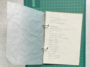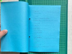 Ein Gedicht, das ich Ende November 2024 unter den Eindruck eines Film über Grzegorz Przymek verfasst habe, habe ich auf blaues Papier gedruckt und mit Packpapier eingefasst. Grzegorz Przymek wurde nur 18 Jahre alt und von der polnischen Miliz totgeprügelt. Angeblich um sich an seiner Mutter Barbara Sadowska zu rächen, die Regimekritikerin war. Das Zine hat neun Seiten.