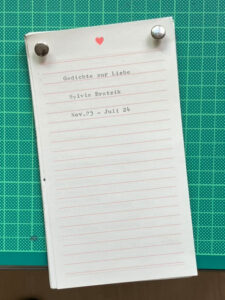 Im November 2023 begann ich Gedichte zum Thema Liebe auf einem Block niederzuschreiben und daraus auch eine gedruckte Version zu machen: