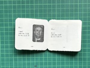 Im Januar 2025 ging es weiter mit dem Zinetausch #7 für das das Format A5 vorgegeben war. Das war für mich auch eine sehr spannende Erfahrung, da ich bislang nur in den kleinen Formaten gearbeitet habe. Herausgekommen ist ein Zine, wo ich über meine Arbeit als Ahnenforscherin schreibe: